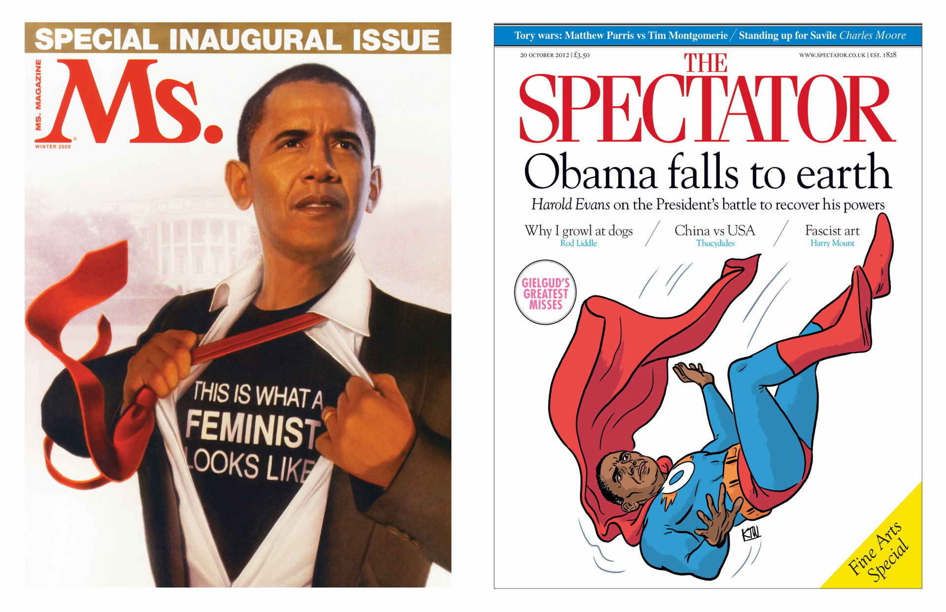 The build-up to 2008 saw Obama cast by the press as both Superman and the Messiah. The cover of The ‘New Republic’s January 30 edition depicts him as a Christ-like figure within a stained glass window, complete with a Virgin Mary-style halo to enhance the air of sainthood. The Winter 2009 cover of ‘Ms’ features the president-elect as a feminist Superman, poised to champion the female cause. Such covers rendered Obama, not as president, but as saviour. Was it racist of the press to do this, knowing that he would never reach such lofty heights? The forty-three white presidents who came before Obama were not portrayed as superheroes in Spandex, so why do it to him? Because he was the first black president, expectations were higher — but was it fair to expect more of a president simply on the grounds of his ethnicity?