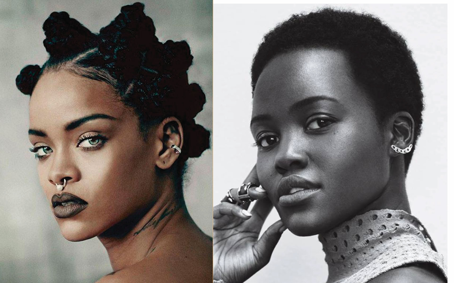Recording artist Rihanna and actress Lupita Nyong’o present contrasting styles amongst today’s celebrities of colour. These and other related issues are discussed in Ben Arogundade’s 2000 book, ‘Black Beauty: A History And A Celebration.